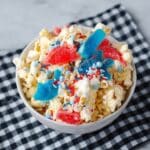 Shark Week Popcorn is a fun and festive treat perfect for celebrating Shark Week or any ocean-themed party. This colorful popcorn mix combines classic buttery popcorn with an assortment of gummy candies and is drizzled with rich white chocolate, then topped with red and blue sprinkles for an eye-catching finish. It’s an easy, no-bake snack that is both sweet and playful, ideal for kids and adults alike.