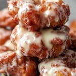 Delight in these soft cinnamon apple fritters, featuring tender diced apples folded into a spiced batter and fried to golden perfection. Finished with a smooth vanilla glaze, they make a perfect comforting treat for breakfast or dessert.