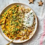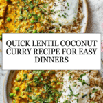 A quick and flavorful Speedy Lentil Coconut Curry that combines aromatic spices and creamy coconut milk with nutritious lentils and vegetables. Perfect for a comforting weeknight meal, this curry is served with brown rice and a dollop of light coconut or natural yogurt for added creaminess.
