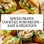 These Spiced Prawn Cocktail Subs are a fresh and flavorful sandwich option featuring cooked North Atlantic prawns mixed with a tangy mango chutney mayonnaise and mild curry powder. Served on small sub rolls with crisp Little Gem lettuce and cucumber slices, these subs are perfect for a light lunch or easy gathering snack.