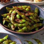 Keywords: spicy edamame, edamame recipe, garlic edamame, Japanese appetizer, spicy snack, healthy snack, plant-based snack