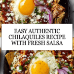 Chilaquiles is a traditional Mexican dish featuring crispy corn tortilla chips baked and topped with a flavorful tomato and serrano chili sauce, finished with fried eggs, Mexican crema, and queso fresco. This comforting breakfast or brunch option combines crunchy textures with spicy, tangy, and creamy elements for a delicious and satisfying meal.