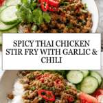 Keywords: Spicy Thai chicken stir fry, Thai chicken recipe, ground chicken stir fry, quick Thai dinner, stir-fry chicken with chili and garlic, easy Thai cooking
