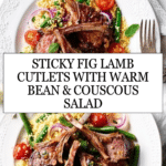 This delicious recipe features tender, lean lamb cutlets glazed with a sticky fig jam and balsamic vinegar reduction, served alongside a warm, vibrant bean and couscous salad. The combination of sweet fig glaze and fresh mint-infused couscous salad makes for a perfect balanced meal that’s easy to prepare yet impressive for any dinner occasion.