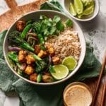 A flavorful and vibrant sticky tempeh stir-fry packed with crunchy vegetables, aromatic spices, and a sweet-savory sauce, served over wholesome brown rice. This quick and easy dish is perfect for a nutritious weeknight meal with a delightful balance of textures and bold flavors.