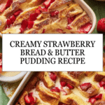 Strawberries & cream bread and butter pudding is a delightful twist on a classic dessert. With layers of jam-spread bread soaked in creamy custard and topped with fresh strawberries, it’s a perfect treat for any occasion.