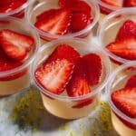 - Fill Cups: Pour the gelatin mixture into each cup gradually, covering the strawberries almost completely to let them suspend in the jello.