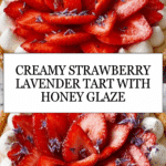 This strawberry tart with lavender and honey cream is a delightful balance of floral, sweet, and fresh flavors. The crisp tart shell holds a luscious lavender-infused cream topped with juicy strawberries, making it a perfect dessert for spring and summer gatherings.