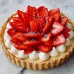 This strawberry tart with lavender and honey cream is a delightful balance of floral, sweet, and fresh flavors. The crisp tart shell holds a luscious lavender-infused cream topped with juicy strawberries, making it a perfect dessert for spring and summer gatherings.