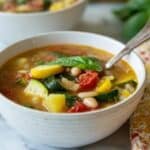 Keywords: Summer Minestrone Soup, zucchini soup, yellow squash soup, Italian soup, healthy soup, easy minestrone