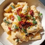 This delightful Baked Feta Pasta with Sun-Dried Tomatoes is a creamy, flavorful dish that combines oven-roasted cherry tomatoes, tangy baked feta cheese, and savory sun-dried tomatoes tossed with your favorite short pasta. Enhanced with garlic, herbs, and a hint of crushed red pepper flakes, it’s an easy yet impressive one-dish meal perfect for any occasion.