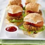 - Assemble and serve: Split the mini burger buns and fill each with a cooked burger, fresh lettuce leaves, tomato slices, and a drizzle of tomato ketchup. Serve immediately.