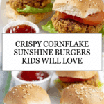 Keywords: Sunshine burgers, cornflake burgers, baked beef burgers, kid-friendly burger recipe, crispy burgers