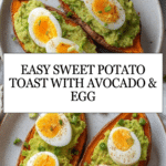Sweet Potato Toasts are a simple and nutritious alternative to traditional bread toast, featuring toasted sweet potato slices topped with creamy avocado and protein-rich hard-boiled eggs, seasoned with salt and black pepper for a flavorful, healthy snack or breakfast option.