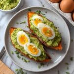Sweet Potato Toasts are a simple and nutritious alternative to traditional bread toast, featuring toasted sweet potato slices topped with creamy avocado and protein-rich hard-boiled eggs, seasoned with salt and black pepper for a flavorful, healthy snack or breakfast option.