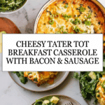 Tater Tot Breakfast Casserole with Bacon, Sausage, and Cheddar Recipe