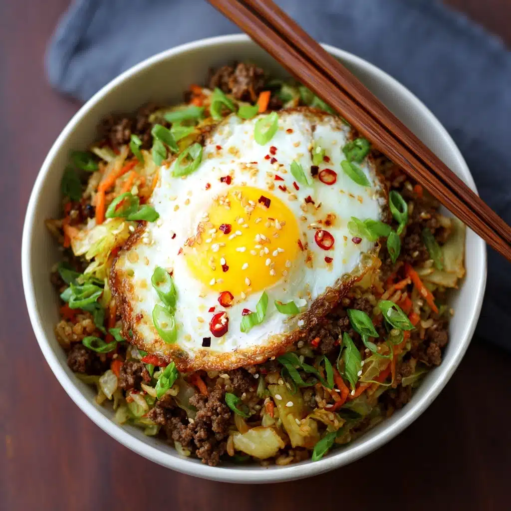This recipe stands wonderfully on its own, but it also pairs beautifully with simple steamed jasmine rice or cauliflower rice for a low-carb option. A crisp cucumber salad or edamame beans can be great sides that complement the savory, umami flavors of The BEST Egg Roll in a Bowl Recipe.