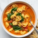 This creamy Tomato Tortellini Soup combines rich tomato flavors with tender tortellini and fresh spinach in a comforting, hearty dish. Simmered slowly to blend and concentrate the flavors, it’s a perfect cozy meal topped with Parmesan cheese.