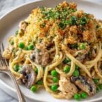 This Turkey Tetrazzini Casserole Bake is a comforting, creamy pasta dish perfect for using up leftover turkey. It combines tender turkey, pasta, mushrooms, peas, and a rich Parmesan cream sauce, topped with a crispy breadcrumb and cheese crust baked to golden perfection.