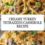 Keywords: turkey tetrazzini, turkey casserole, creamy turkey pasta bake, Thanksgiving leftovers, comforting casserole, baked pasta dish
