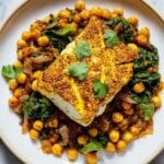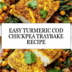 This vibrant Turmeric Cod with Chickpea Traybake is a wholesome, flavorful one-pan meal that combines tender cod fillets with a spiced chickpea and spinach medley. The dish is infused with warming turmeric, fresh ginger, and a touch of chili flakes for mild heat, all baked together to create a comforting yet healthy dinner option perfect for busy weeknights.