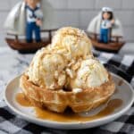 This USS Butterscotch Ice Cream is a creamy, no-churn treat that combines rich butterscotch flavors with a hint of sea salt for a perfect balance of sweet and savory. Served over toasted Eggo waffles, it makes for an indulgent and easy dessert anyone can enjoy at home.