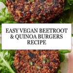 Keywords: vegan burgers, beetroot burgers, quinoa burgers, healthy burgers, plant-based recipe, vegan main course