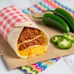 This vegan Taco Bell Chili Cheese Burrito recipe features a flavorful chili filling made with soy curls, refried beans, and a blend of spices, topped with vegan cheddar cheese and wrapped in a warm tortilla. It’s a delicious plant-based take on a classic favorite, perfect for a hearty and comforting meal.