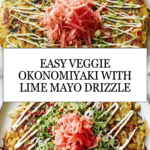 This Veggie Okonomiyaki is a delicious Japanese-inspired savory pancake packed with fresh vegetables like pak choi, Savoy cabbage, and spring onions. Bound together with eggs, flour, and milk, and flavored with low-salt soy sauce and a touch of chili, this dish is cooked on the stovetop until perfectly golden and tender. Finished with a tangy lime mayonnaise drizzle and optional sushi ginger and wasabi, it’s a vibrant, healthy, and satisfying meal perfect for any day.