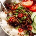 Keywords: Vietnamese caramelised pork, ground pork recipe, caramelised pork bowl, Vietnamese pork stir fry, easy pork mince dish, Asian skillet pork, brown sugar pork