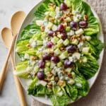A classic and refreshing Waldorf Salad featuring toasted walnuts, crisp apples, juicy red grapes, and crunchy celery, all tossed in a creamy lemon-mustard dressing and served atop fresh romaine lettuce leaves. Perfect as a light lunch or a sophisticated side dish.