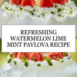 This Watermelon, Lime, and Mint Sugar Pavlova is a refreshing twist on a classic dessert. Crisp on the outside and soft inside, it’s topped with cool cream, zingy lime, and sweet watermelon for the perfect summer treat.