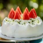 This Watermelon, Lime, and Mint Sugar Pavlova is a refreshing twist on a classic dessert. Crisp on the outside and soft inside, it’s topped with cool cream, zingy lime, and sweet watermelon for the perfect summer treat.