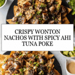 Keywords: wonton nachos, ahi tuna poke, appetizer, Asian fusion, fried wontons, spicy mayo, party food